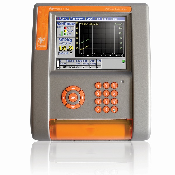Fitmate PRO, yenilikçi, doğru, çabuk, dinlenme ve egzersiz sırasında gerçek zamanlı oksijen tüketimi (VO2) sırasında kesin ölçümleriyle kolay kullanılan masaüstü metabolizma analizatörüdür . Fitmate PRO max ve sub.max VO2 ‘yi ölçer. Ayrıca egzersiz bölgeleri ’’training zones’’ (VO2 ve kalp atım hızı ‘HR’ arasındaki ilişkiye dayanır) ve ACSM kurallarına dayalı fitness değerlendirme ve egzersiz yönerge programlarının tamamını sağlar. Geniş LCD ekranı ve dahili termal yazıcısı ile fitmate PRO bilgisayara gerek kalmadan da kullanılabilir.